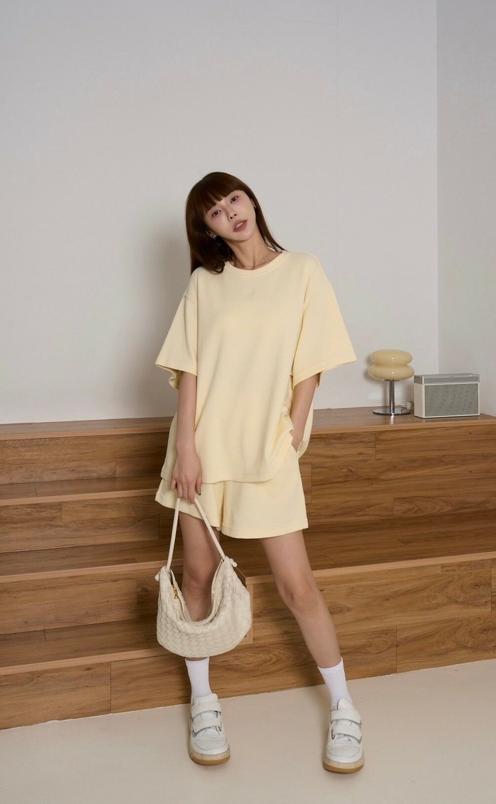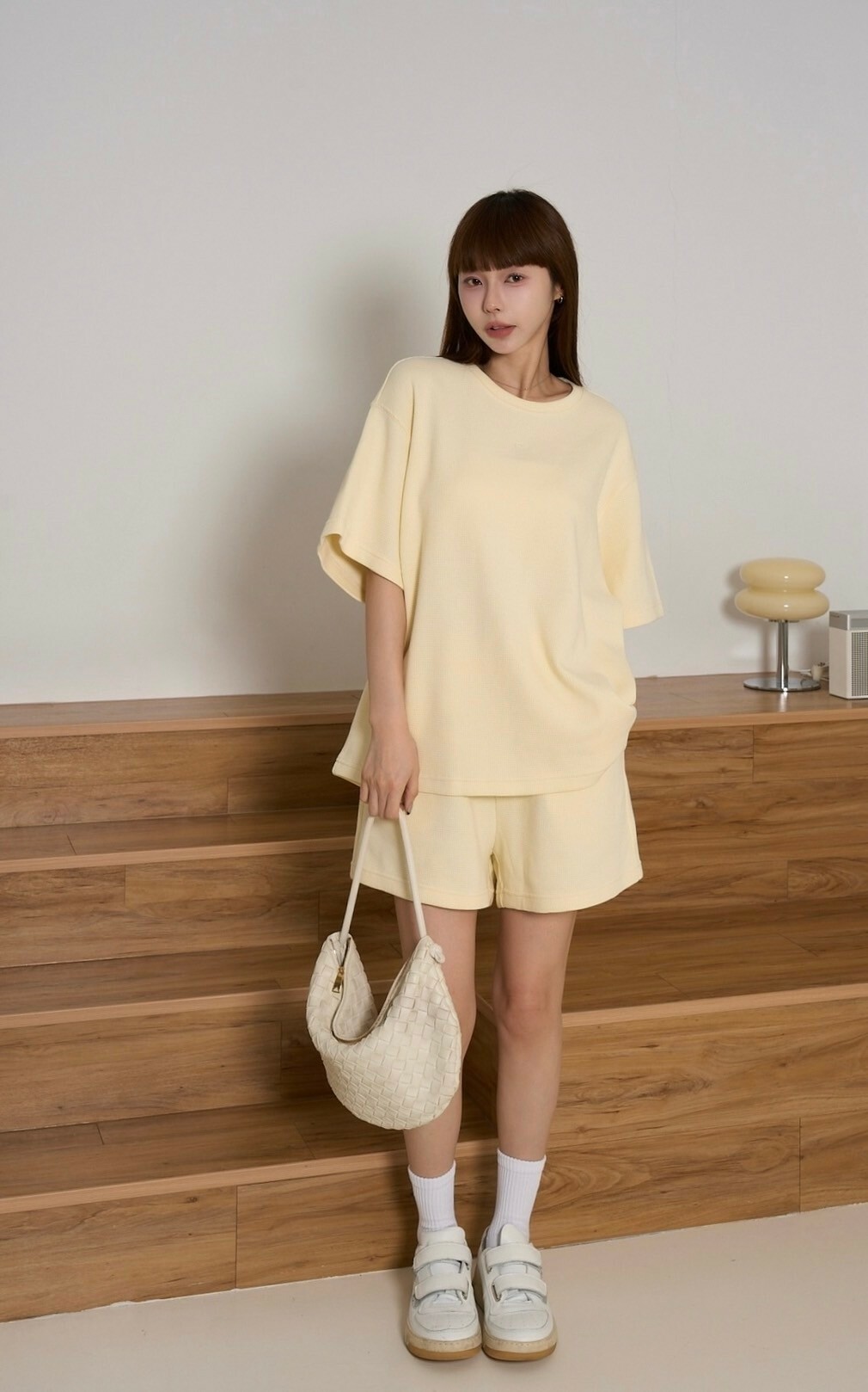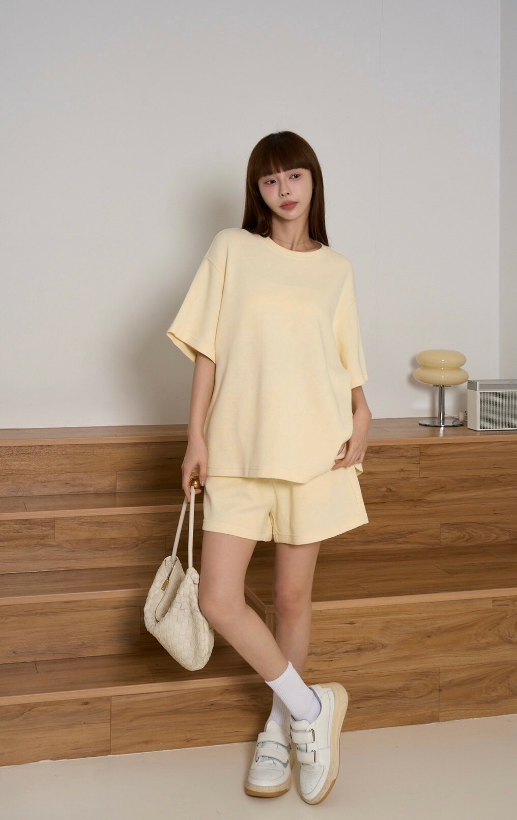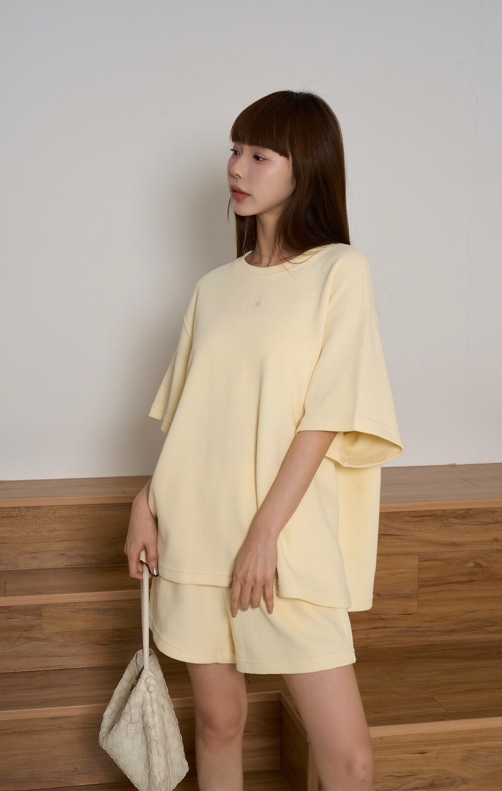 (現貨)輕鬆感華夫格重磅寬鬆上衣-奶黃